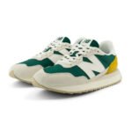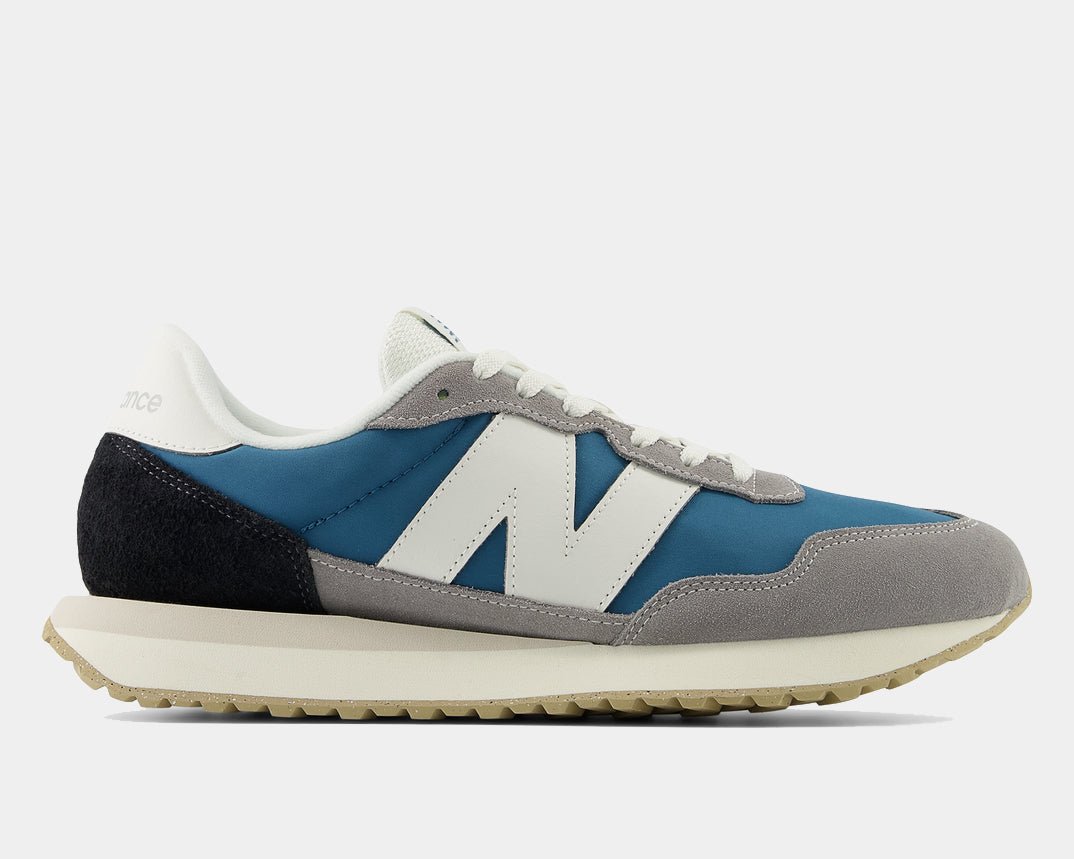 The running shoes of the 1970s might best be described as deceptively simple. While lacking the visible technology and aggressive design of later years, the innovations of the ‘70s would lay the foundation for modern performance. The New Balance 237 V1 is a contemporary reinterpretation of ‘70s running heritage that melds a range of heritage design inspirations into one deceptively simple, exceptionally versatile, contemporary silhouette. An EVA midsole, herringbone outsole and streamlined upper offer a classic launching point for modern flourishes like oversized N branding, extended midsole length, and gator inspired foxing and mudguard. You could call the cohesion of the New Balance men’s 237 shoes’ familiar feel and exaggerated updates the simplest way to make a statement.