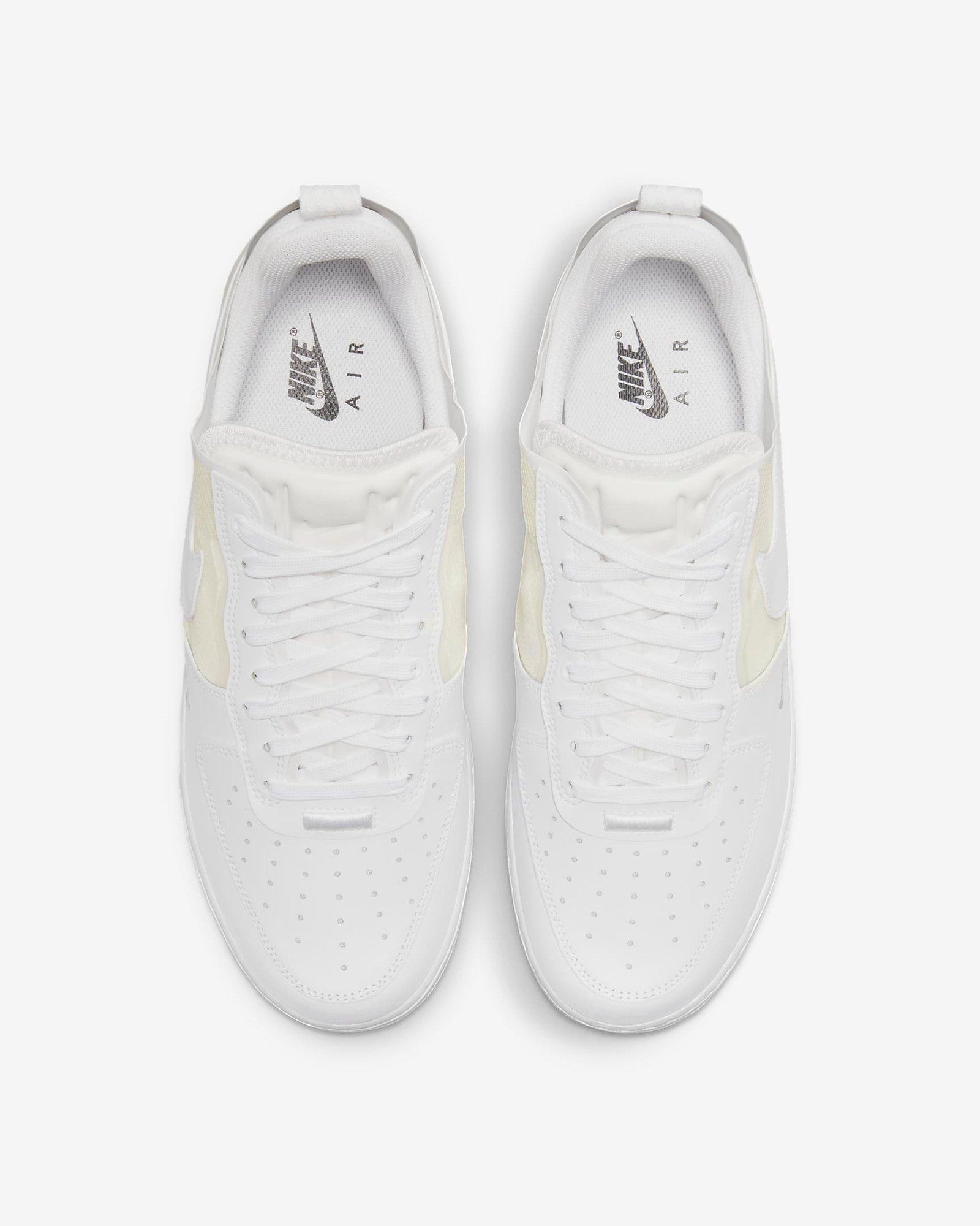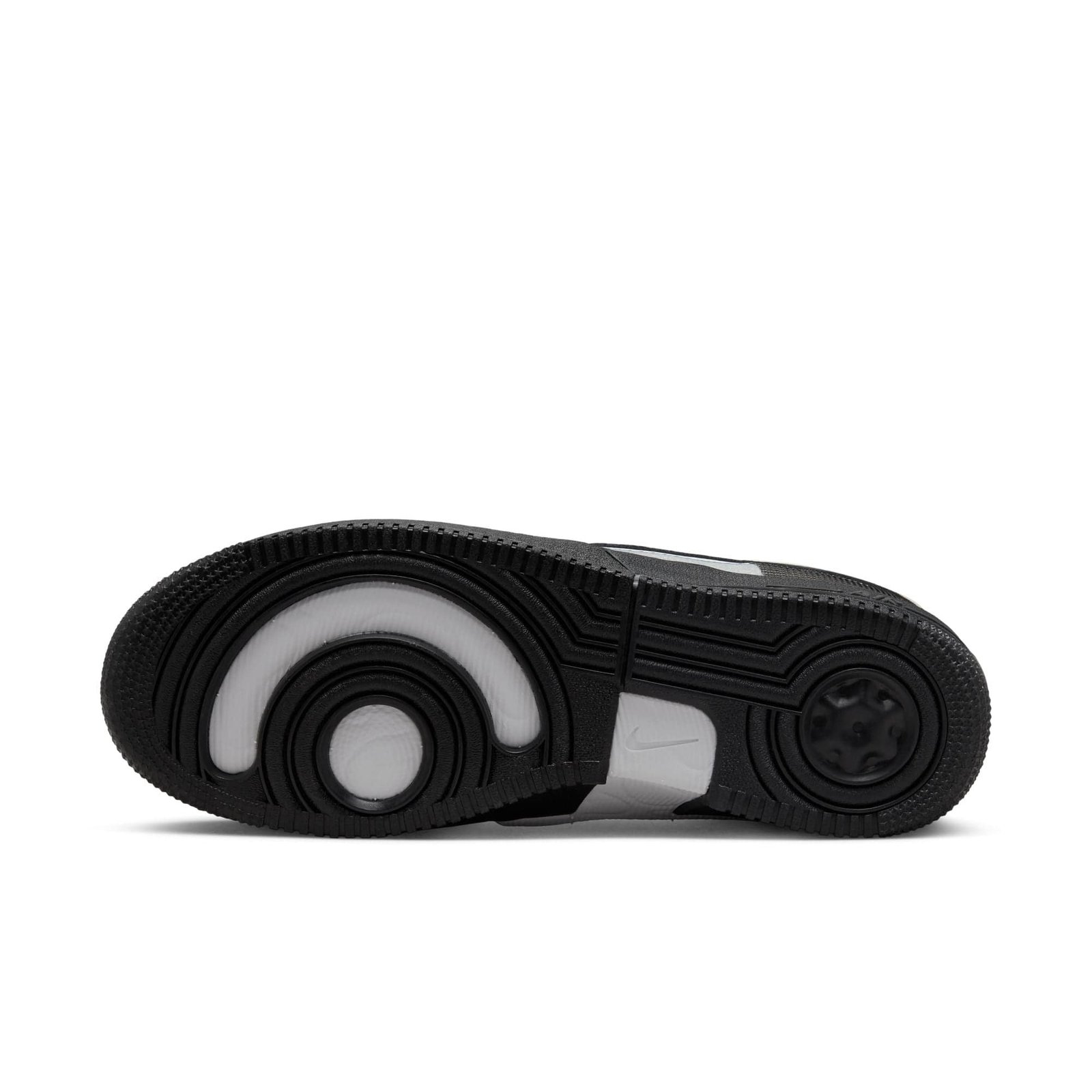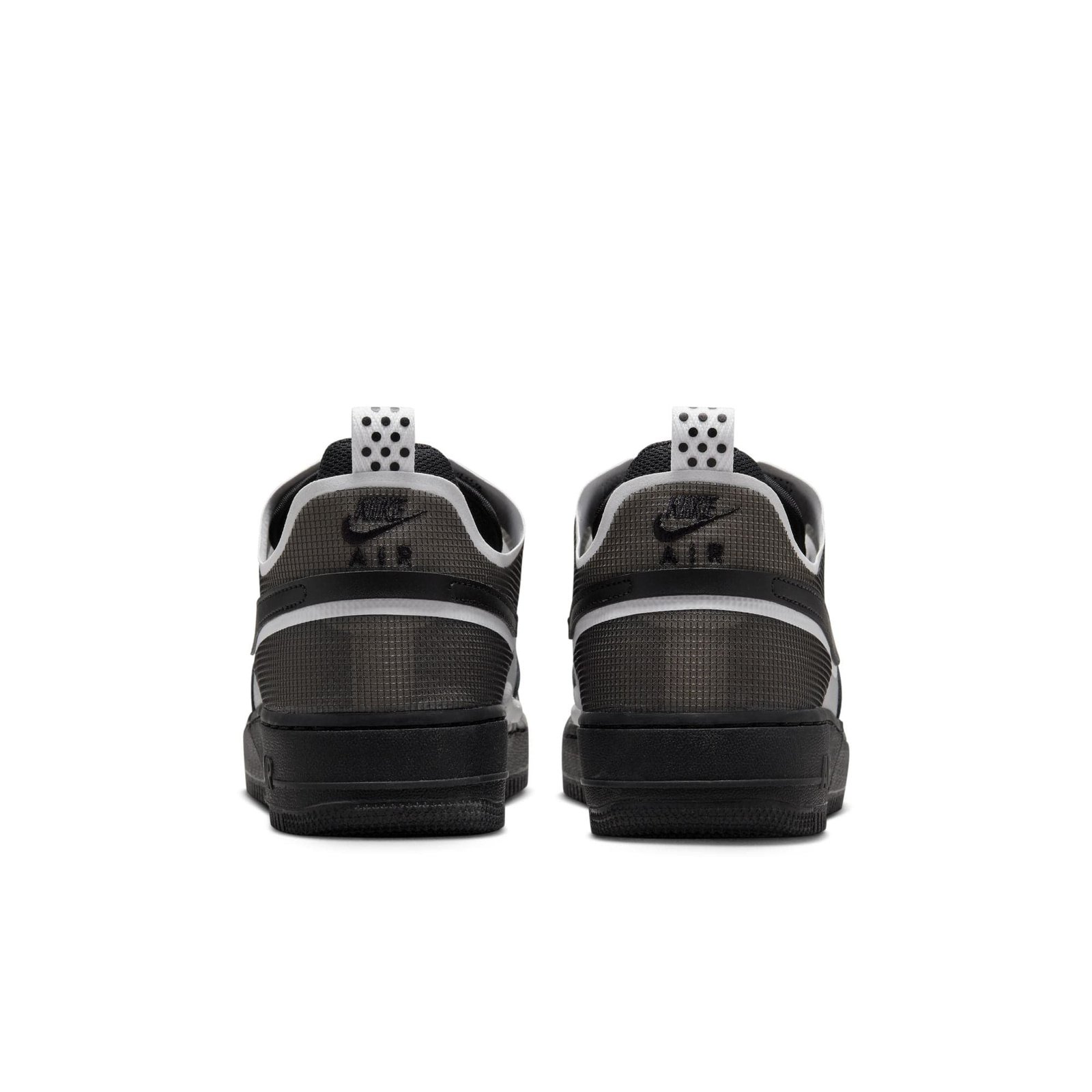 - The Nike Air Force 1 React shoes’ (black or white) rubber outsole with translucent accents adds traction and durability.