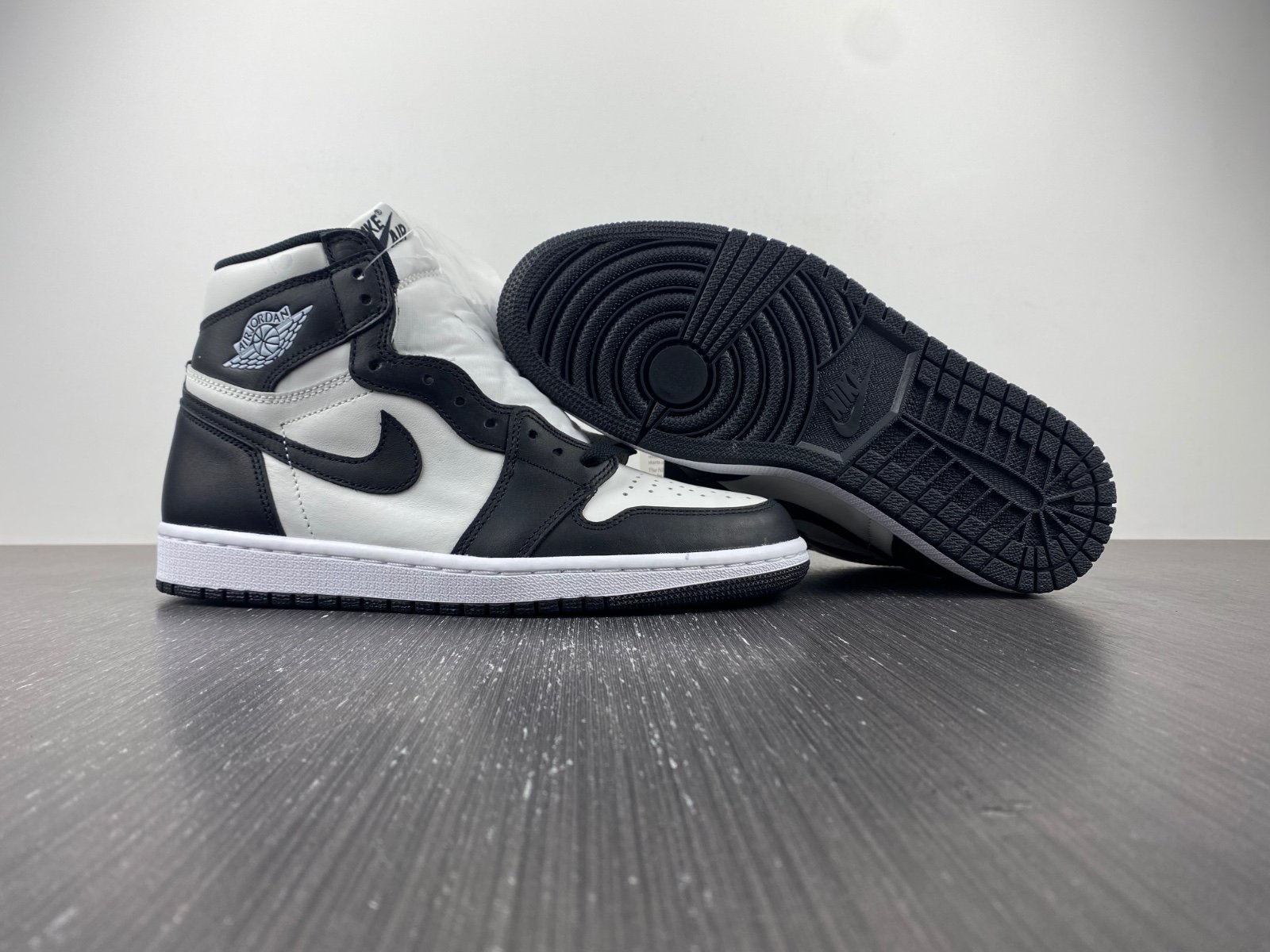 The Air Jordan 1 Retro High ’85 OG ‘Black White,’ also known as ‘Panda,’ reintroduces an original colorway, meticulously built to the same specs as the 1985 OG. This sneaker features a two-tone leather upper, blending white and black, with a black Swoosh and a white Wings logo on the lateral profile. The design is completed with a black and white Nike Air tongue tag, matching the midsole and rubber outsole.