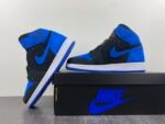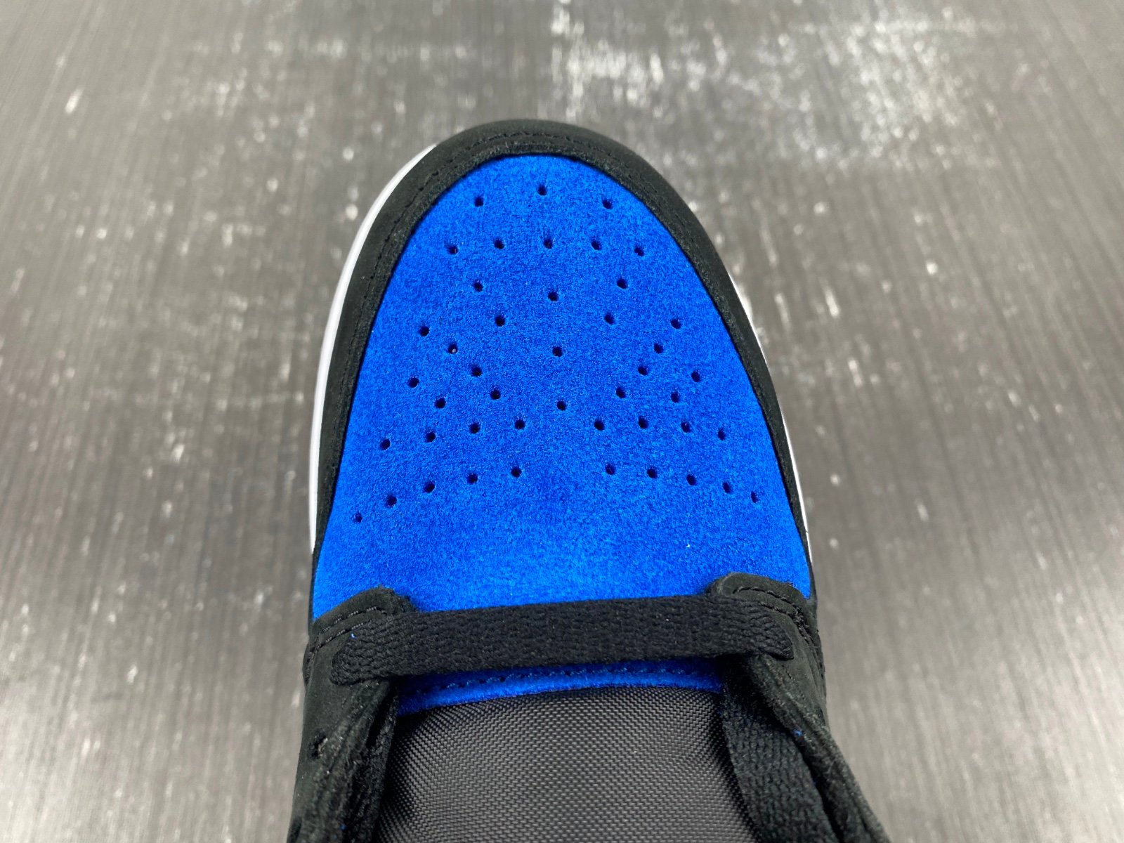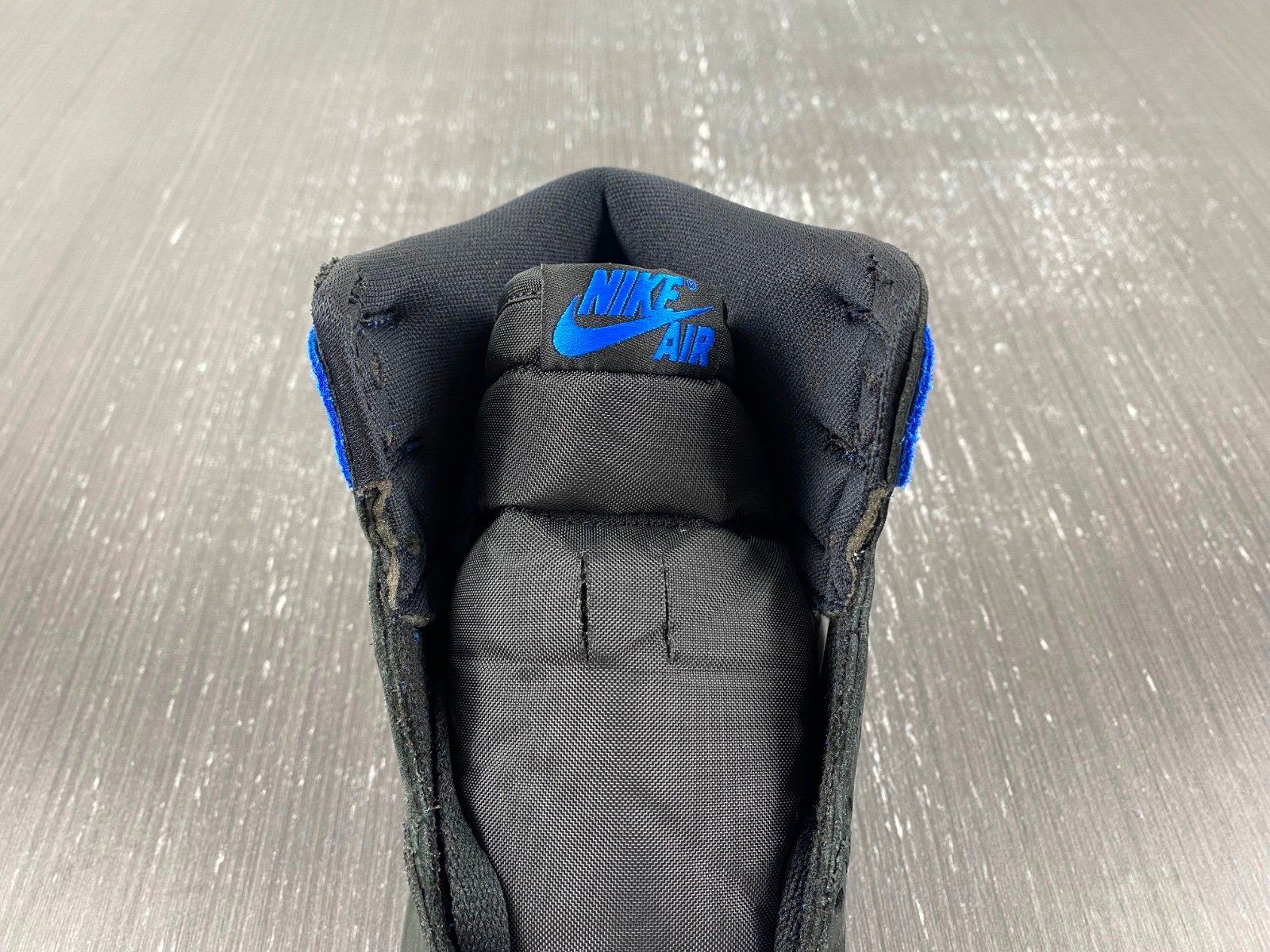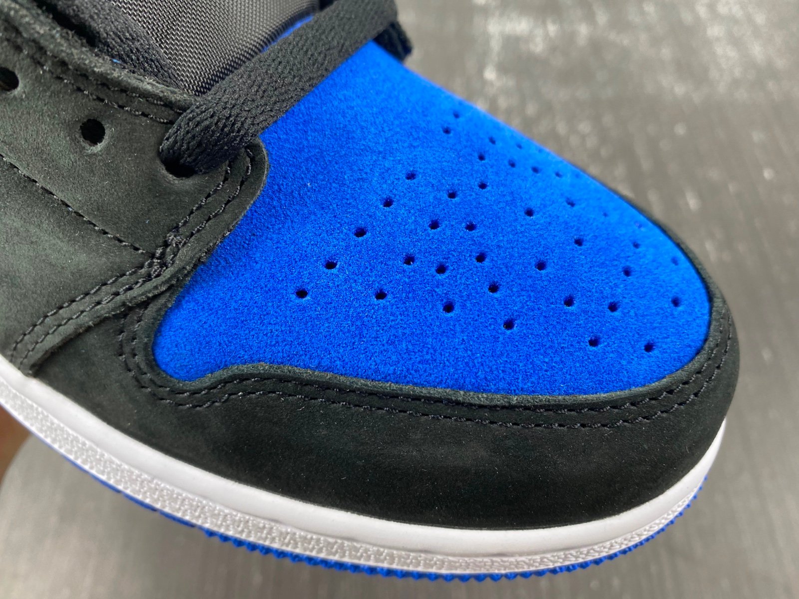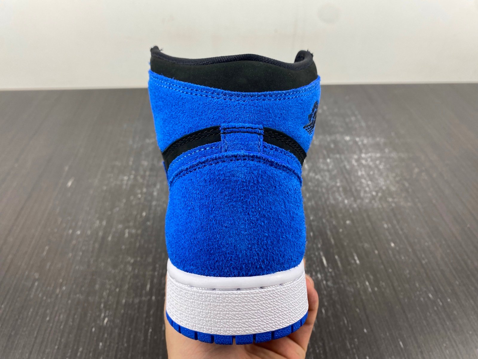 Air Jordan 1 High OG Royal Reimagined gives a contemporary spin to the timeless 1985 colorway. The shoe uses premium suede instead of leather for its construction, with black as the base color and vibrant Royal Blue accents applied to the toe box, Swoosh, heel and collar. The high, padded collar features the classic Jordan Wings logo, while the woven tag on the nylon tongue maintains a nod to the original design. The sneaker has durable rubber cupsole, which provides both comfort and support. The white midsole provides an excellent contrast with the Royal Blue and star-studded outsole, which provides both a sharp look and excellent traction.
