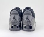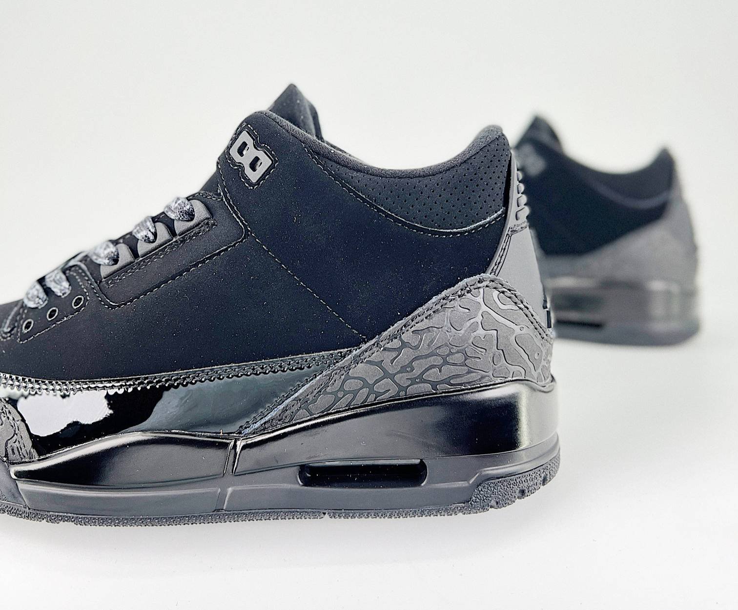 The Air Jordan 3 Retro Black Cat marks the return of a fan-favorite colorway, reimagined with modern craftsmanship and a stealthy, all-black palette. Cloaked in premium black nubuck, the upper is accented with deep charcoal elephant print overlays, lending subtle texture and depth to the design. Unique elephant print laces and glossy black patent leather elements enhance the luxurious yet understated aesthetic, paying homage to Michael Jordan’s fierce on-court alter ego, the “Black Cat.”