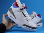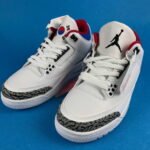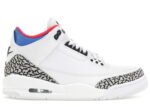 This iteration of the Air Jordan 3 commemorates the 1988 Olympics in Seoul. Taking inspiration from the South Korean flag, the shoe features black, red, and blue accents on the inner lining and collar. Air Jordan 3 Retro Seoul has white upper, constructed from tumbled leather, includes the Jordan 3’s signature elephant print panels. Korean characters appear on the inside of each tongue: ‘서울’ (Seoul) on one side; the 1988 games motto, ‘화합과 전진’ (Harmony and Progress) on the other.