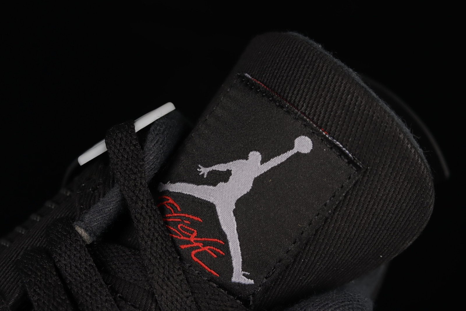 The Air Jordan 4 Retro SE ‘Black Canvas’ sports a versatile color palette reminiscent of the rare Eminem Carhartt x Air Jordan 4. It features a black canvas upper with tonal suede overlays on the forefoot and grey molded eyelets. The back heel and woven tongue tag are adorned with grey Jumpman logos, while a crimson Flight logo on the tongue adds a striking contrast. The sneaker is built on a two-tone polyurethane midsole with visible Air-sole cushioning in the heel for comfort.