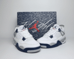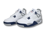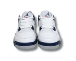 The Air Jordan 4 Retro TD ‘Midnight Navy’ brings iconic Jordan style to young sneaker fans. This version features a white leather upper with ventilated netting on the quarter panels, navy eyelets, and grey wings with navy speckles. The heel tab showcases a Jumpman logo with the same speckled design, mirrored by another Jumpman on the tongue. A plush foam midsole with navy speckles and a herringbone-traction rubber outsole provide lightweight cushioning and grip.