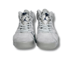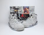 The Air Jordan 6 Retro ‘Georgetown’ pays homage to the Hoyas, who faced Michael Jordan’s North Carolina Tar Heels in the 1982 NCAA championship game. This iconic silhouette features a grey suede upper with perforated details and a Huarache-like inner sleeve. Navy accents highlight the heel tab, lace locks, and embroidered Jumpman logos on the tongue and heel. A two-tone polyurethane midsole with a visible Air-sole unit in the heel and a translucent rubber outsole complete the design.