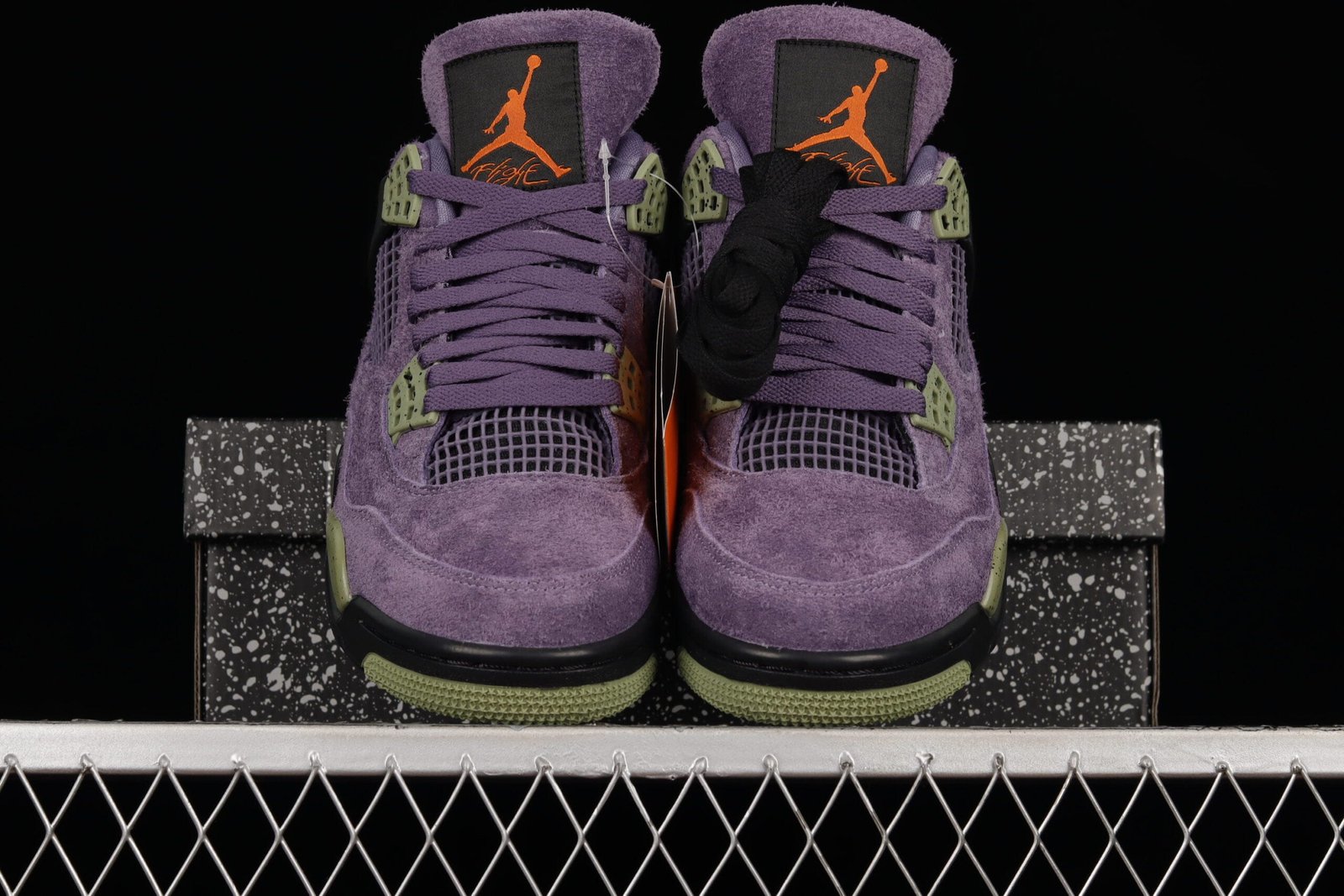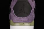 The women’s Air Jordan 4 Retro ‘Canyon Purple’ gives Tinker Hatfield’s iconic 1989 design a bold new look. This iteration replaces the traditional leather or nubuck with a shaggy suede upper in a vibrant purple hue. Lime green accents highlight the speckled eyelets and midsole, while the signature Jumpman logo appears in Safety Orange on the woven tongue tag. The bright colors are balanced by contrasting black on the molded wings, Jumpman-embossed heel tab, and herringbone-traction rubber outsole, providing a striking and modern update to the classic silhouette.