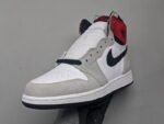 Jordan introduces a fresh colorway to their iconic lineup with the Jordan 1 Retro High Light Smoke Grey. Drawing inspiration from the 2018 Jordan 1 Union LA, this model features a unique blend of colors and materials for a distinct look. The upper is crafted from white leather with grey suede overlays and a bold red leather ankle panel. Adding to the design are black suede details on the heel and Swoosh, paired with a white midsole and black outsole.