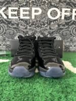 First revealed in 2011 as part of the Air Jordan Blackout Collection, the Air Jordan 11 Retro ‘Cap and Gown’ was released to the public in 2018. This formal-inspired sneaker, perfect for occasions like graduations, features laces modeled after graduation cords. The all-black design boasts a combination of patent leather and premium nubuck on the upper, sitting atop an icy blue outsole.