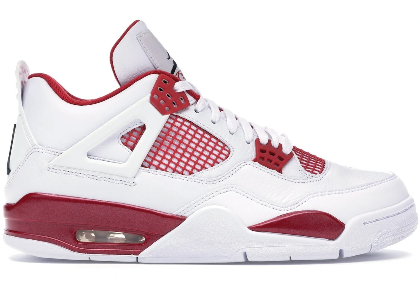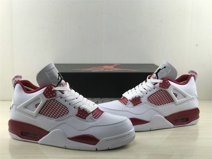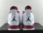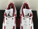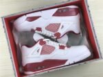 The Air Jordan 4 Retro ‘Alternate 89’ is part of the Air Jordan Alternate collection, which reimagines early Air Jordan sneakers as Player Exclusive (PE) colorways. This model draws inspiration from the Chicago Bulls’ white-and-red home uniform. It features a predominantly white leather upper accented with Gym Red highlights, particularly noticeable above the visible Air unit. Black detailing appears on the Jumpman branding and the outsole, adding contrast to the design.