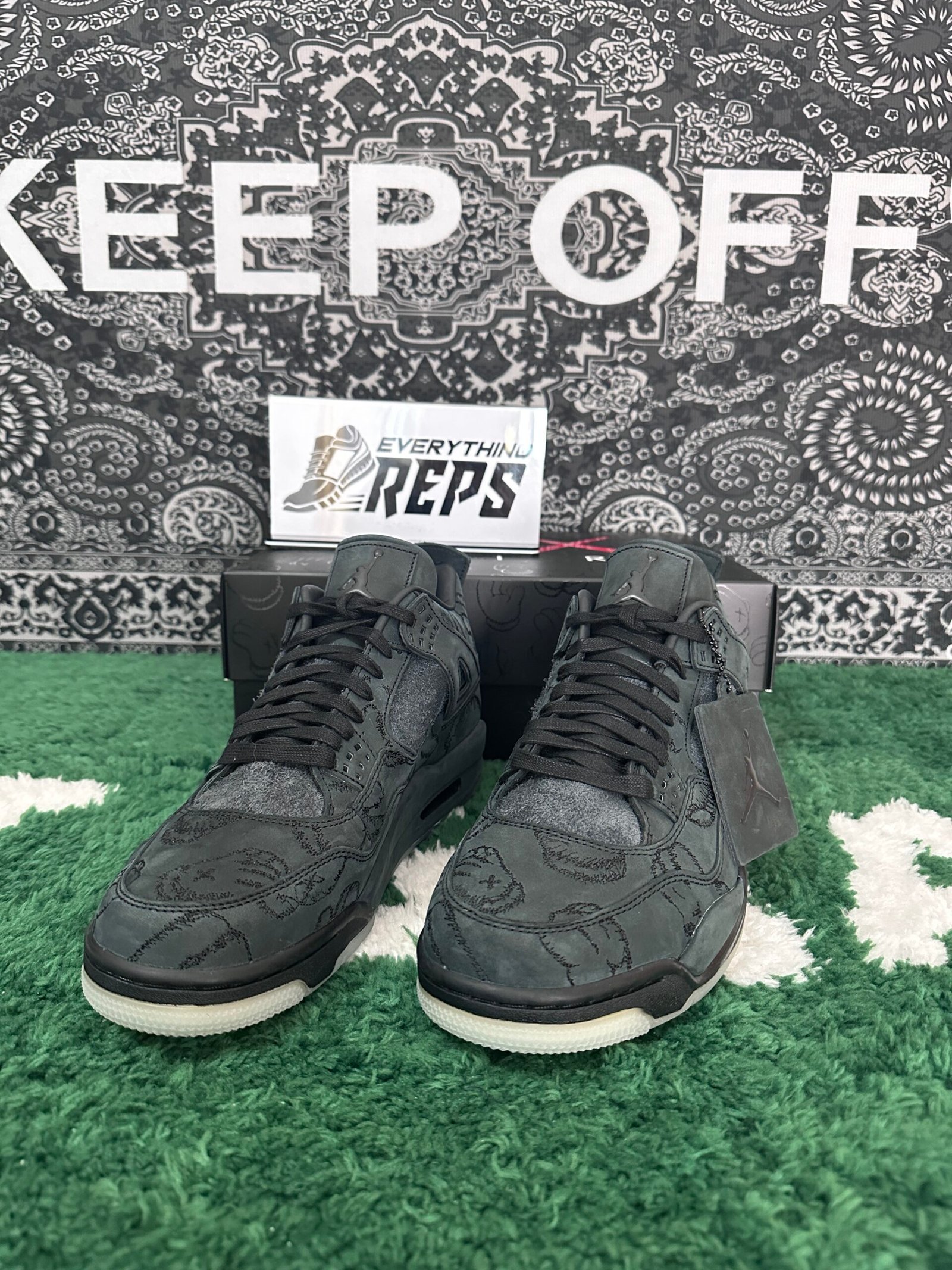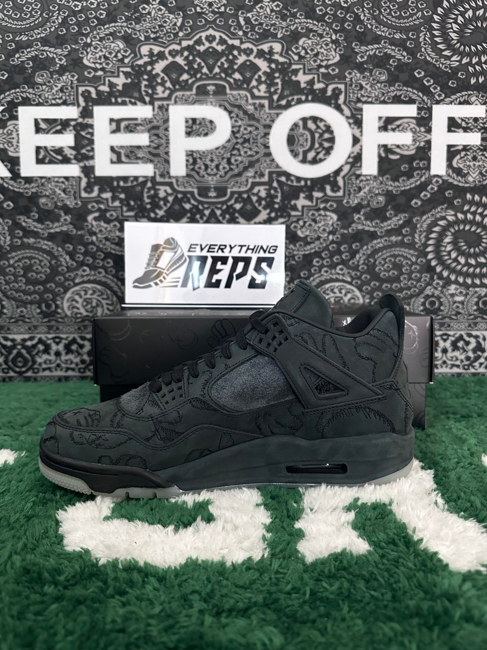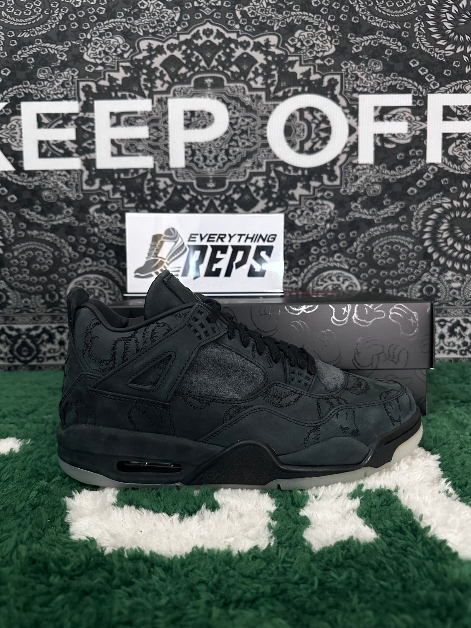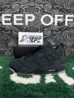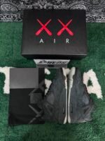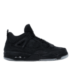 This black colorway of the KAWS x Air Jordan 4 Retro debuted in November 2017, following the Brooklyn artist’s initial grey version from March 2017. The shoe features an all-suede upper with a subtle tonal print of KAWS’ Companion figure’s cartoon hands. These hands also appear beneath the translucent glow-in-the-dark outsole. The artist’s signature ‘XX’ is inscribed on the heels, alongside Nike’s ‘AIR’ trademark.