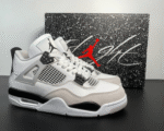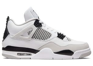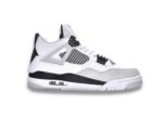 Jordan Brand reimagined a classic Air Jordan 4 colorway with the release of the Air Jordan 4 Retro Military Black. Inspired by the iconic Air Jordan 4 Military Blue, the Air Jordan 4 Retro Military Black showcases a sleek white leather upper complemented by a light grey Durabuck toe wrap and netted TPU accents. The addition of Military Black eyelets, heel tabs, and underlays provides a striking contrast to the overall design. Finished with a white, black, and light grey sole featuring a visible Air unit, this silhouette offers a fresh take on a beloved sneaker.