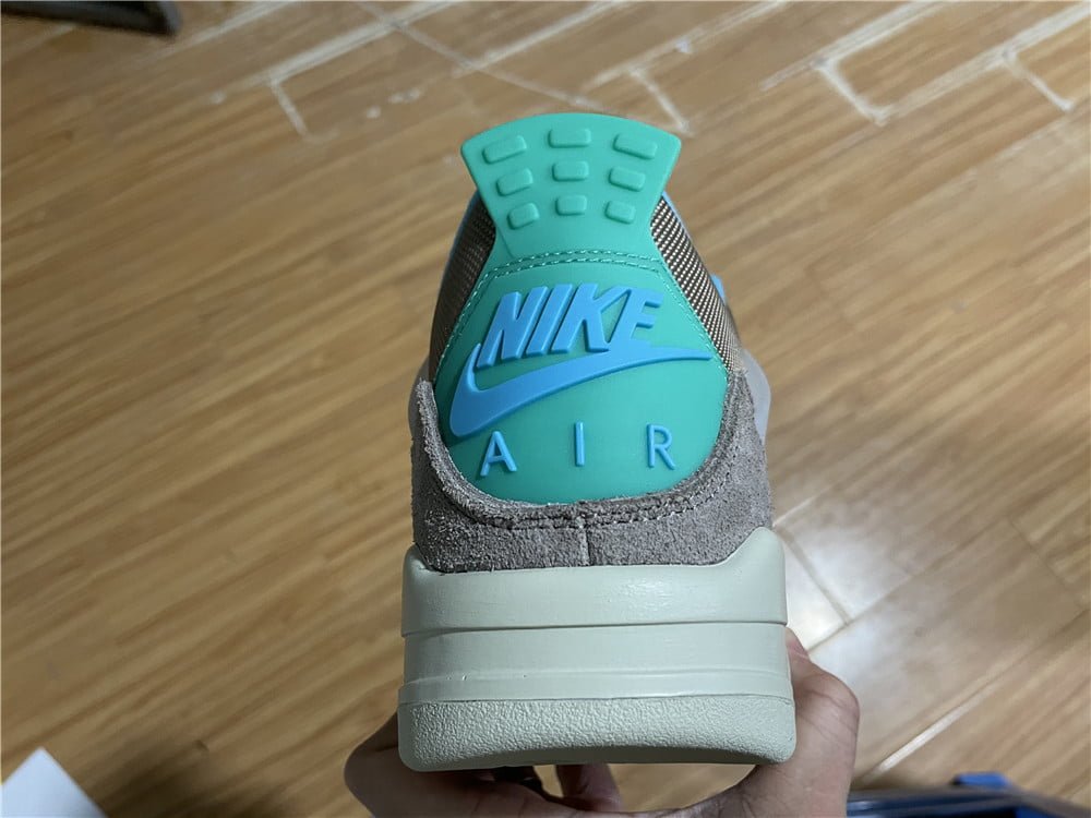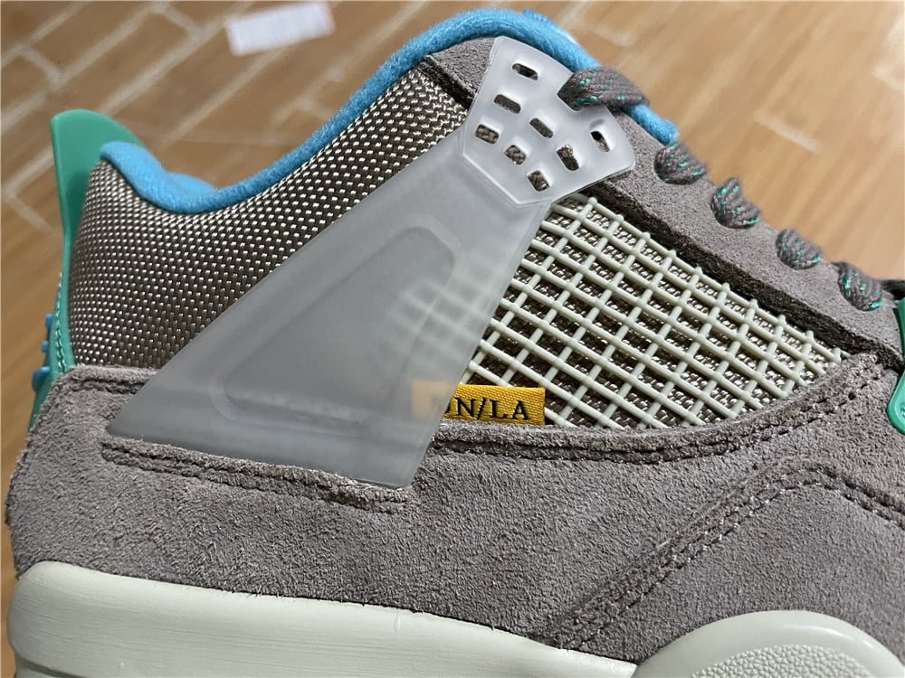 The Air Jordan 4 Union LA Taupe Haze boasts a sophisticated blend of Taupe Haze mesh and suede, accented by Roma Green heel tabs and translucent lace loops. Finished with Union LA woven tabs and a Sail sole.