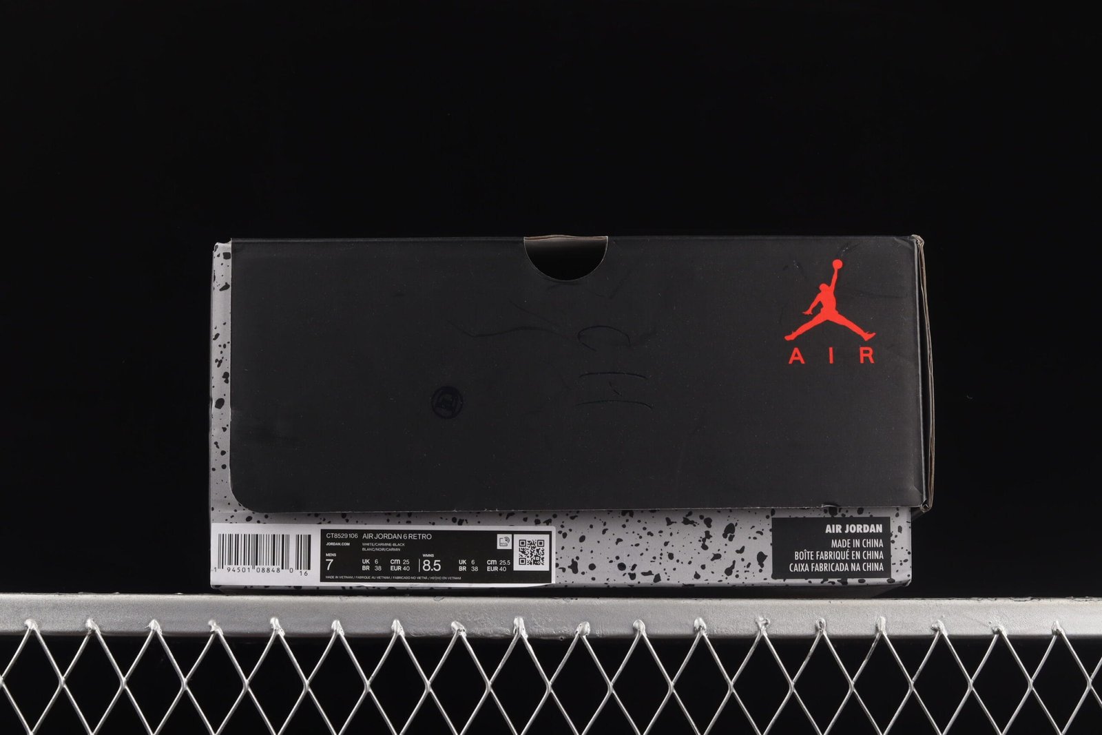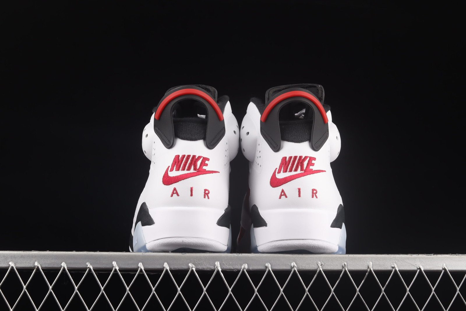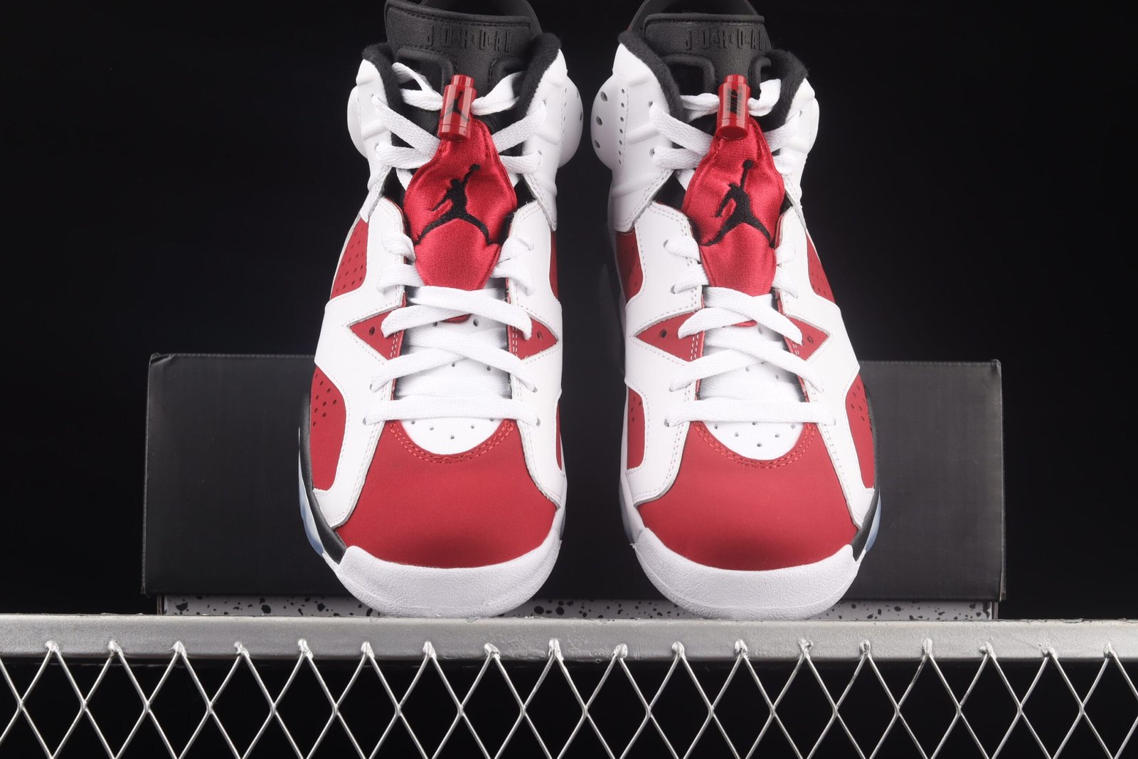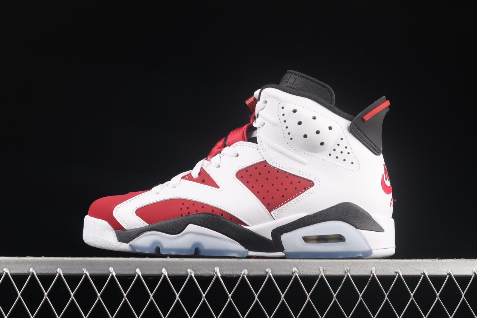The Jordan 6 ‘Carmine’ was worn by Michael Jordan from November 1991 to February 1992 before switching to the Air Jordan 7 Bordeaux at the All-Star Game. Re-released in May 2014, this grade school-sized version features a premium leather upper with Carmine Red and black accents, and an icy blue translucent outsole.