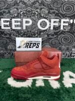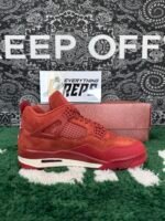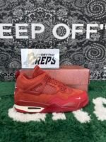 Performance meets style in this rugged silhouette. The durable materials and reinforced construction can handle the demands of a BMX rider while the timeless look makes it a statement piece for the sneakerheads. The Firewood Orange suede with Cinnabar accents is a real show stopper. The Sail midsole balances out the bold upper and keeps the AJ4 classic while taking it to new heights.