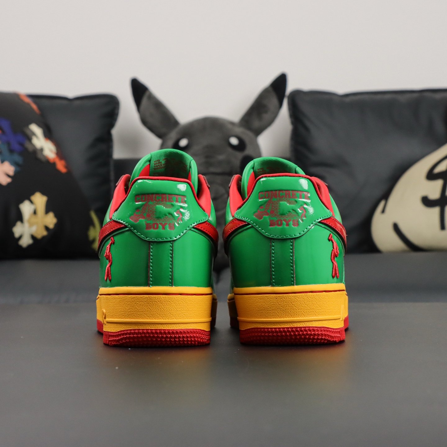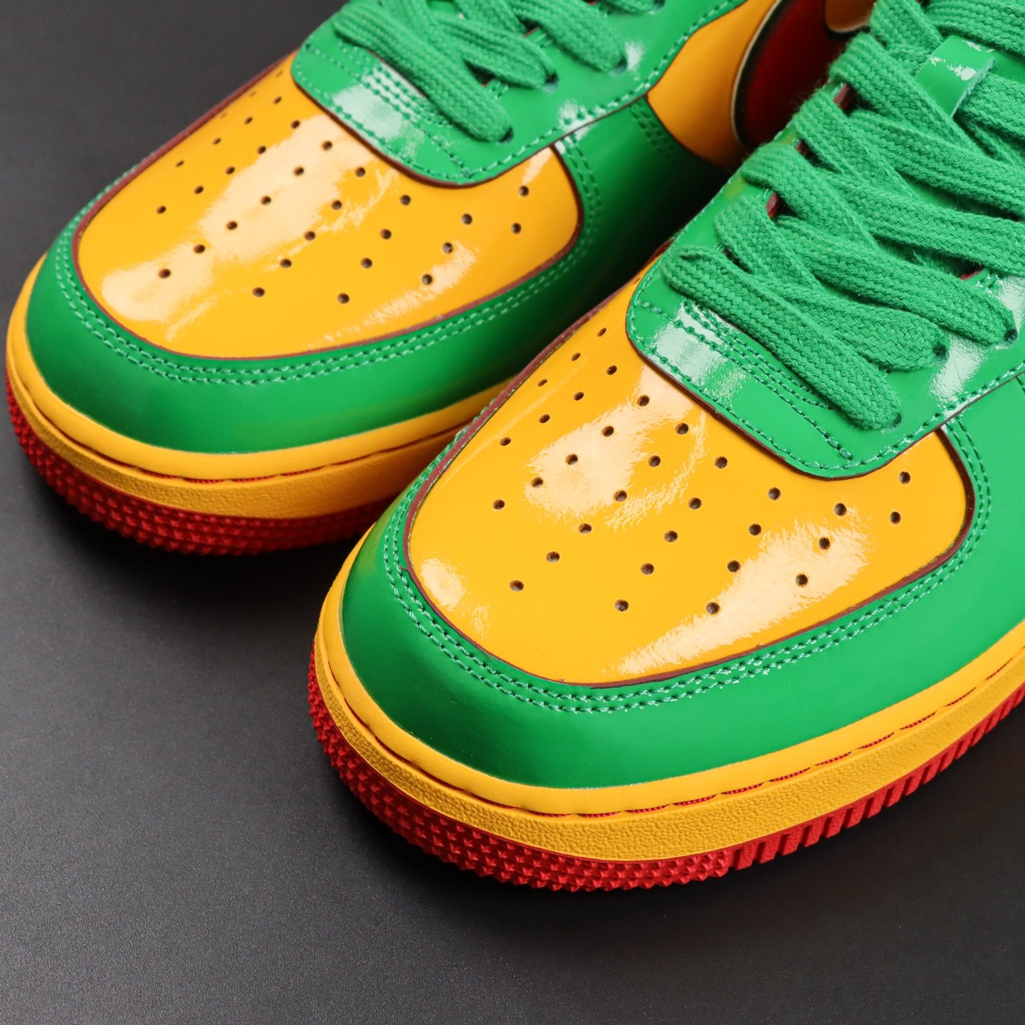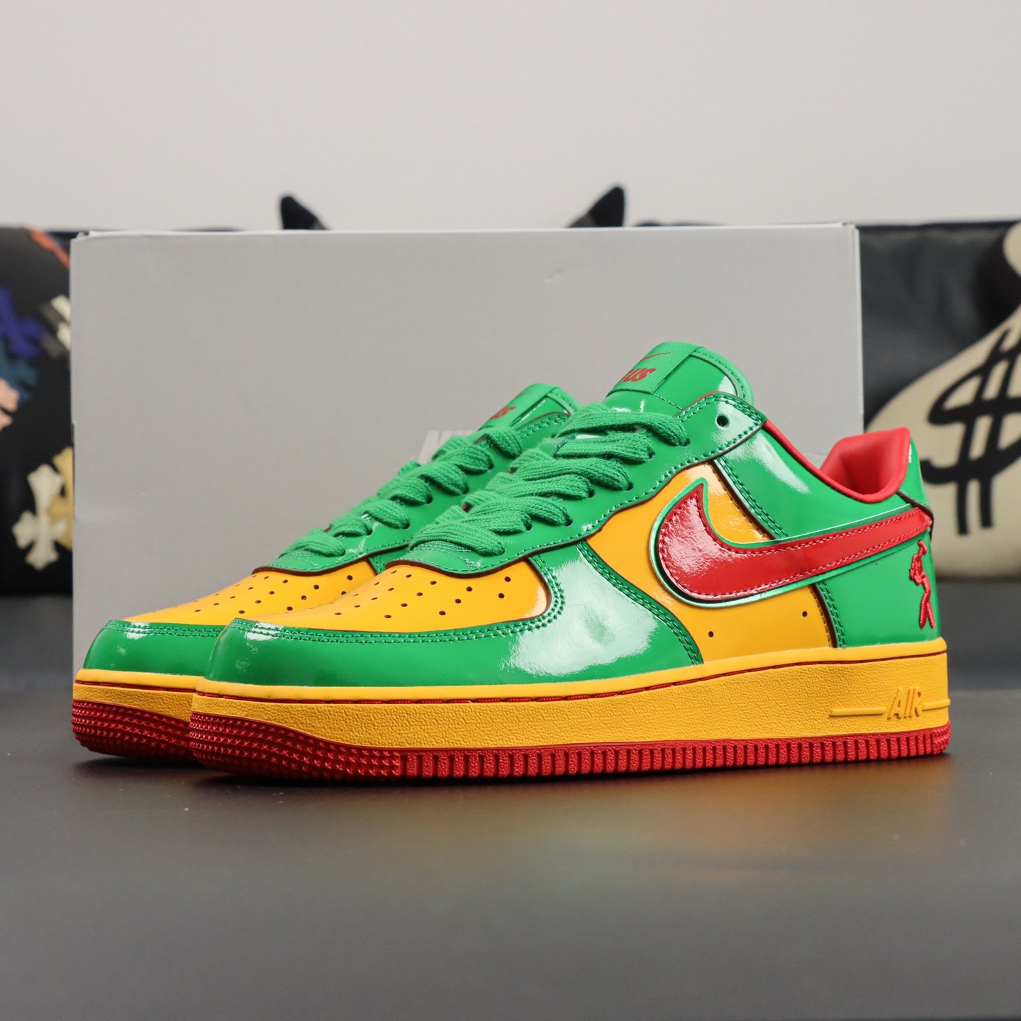 Elevate your style with the Nike Air Force 1 Low Lil Yachty Concrete Boys Lucky Green replica (IH4383-300). Featuring vibrant Lucky Green patent leather, University Gold accents, and bold Mystic Red Swoosh, this sneaker channels early 2000s streetwear vibes. The Concrete Boys logo on the heel and “IT’S US” branding on the tongue add exclusive flair. Perfect for sneakerheads seeking a standout, authentic-inspired look at an affordable price. Shop now for this iconic Lil Yachty collaboration!