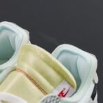 Adding a pop of color, the pull tabs feature a light blue shade, contrasting with the tan accents that disrupt the otherwise off-white color scheme dominating the upper and sole. The “colorless” base under the upper highlights the contrast seen on the outsole, giving the shoe its distinct visual appeal.