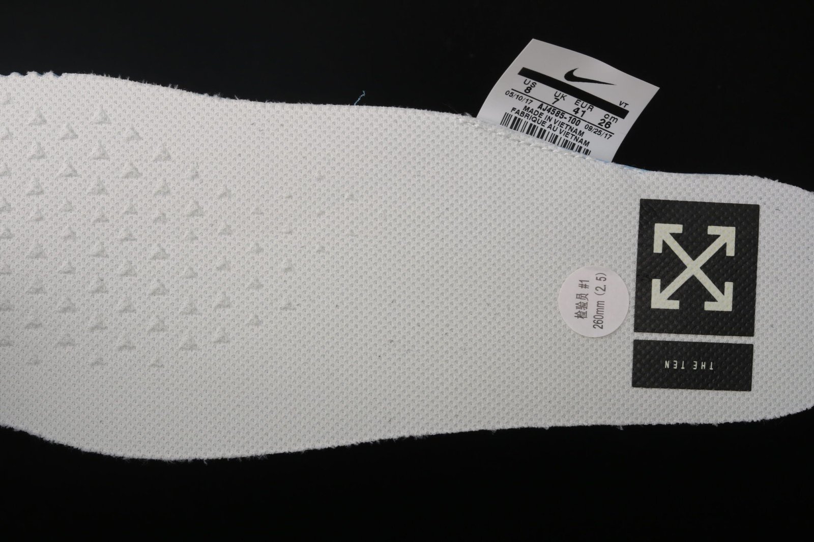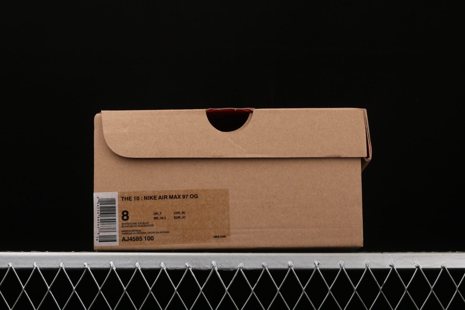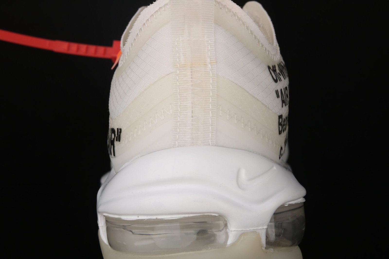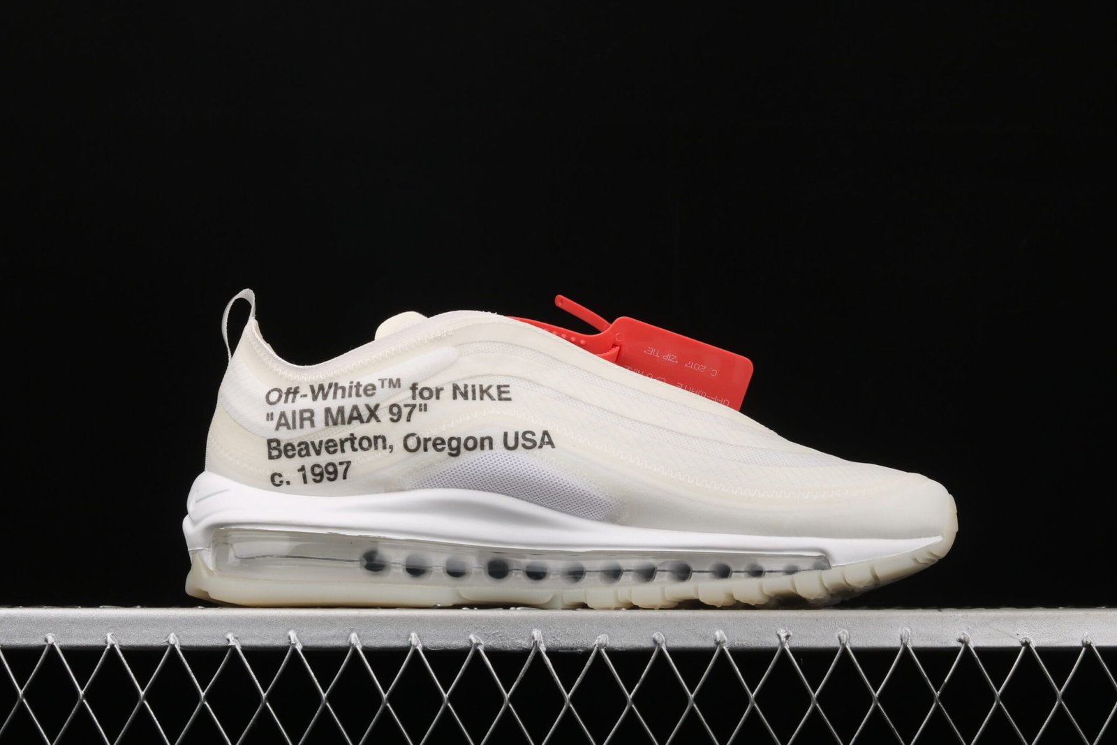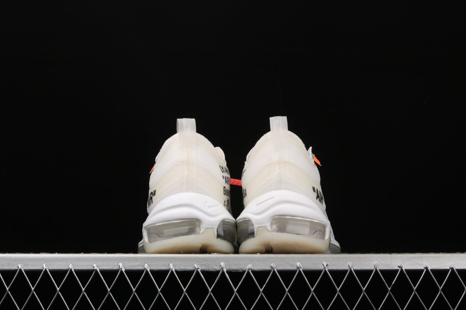 Virgil Abloh brought his signature style to the Nike Air Max 97, as part of Off-White’s “The 10” Collection. Nike Air Max 97 Off-White featured in the “Ghosting” Pack, the shoe combines a white, cone, and ice blue colorway. It boasts a deconstructed translucent upper, semi-revealing materials, and a red zip-tie. The design is completed with black branding, green lace tips, and a translucent outsole. Perfect for fans of both Nike and Off-White, this pair stands out as a must-have.