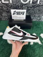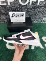 The Nike Kobe 5 Protro Bruce Lee Alternate celebrates the legendary martial artist with a design inspired by the 2010 colorway, which paid tribute to Lee’s iconic jumpsuit from Enter the Dragon. This iteration features a sleek black and white base, complemented by yellow accents that echo the original design, along with bold red scratch marks on the lateral forefoot. While the original Zoom Kobe 5 included Zoom Air cushioning in both the forefoot and heel, this updated version focuses on performance with a larger Zoom Air unit exclusively in the forefoot.