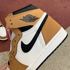In 1985, Michael Jordan earned the NBA’s Rookie of the Year Award, highlighting his incredible point-per-game average and drive for success. To commemorate this, Jordan Brand released the Air Jordan 1 Retro High OG ‘Rookie of the Year.’ This high top features a white leather upper with breathable perforations on the toe box and Gold Harvest leather overlays on the mudguard, ankle, eyestay, and heel. Inside each strap, you’ll find callouts to MJ’s rookie season stats: ‘1984-85 R.O.Y. 2313 POINTS 28.2 PPG’ on one strap and a quote from Jordan on the other.