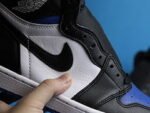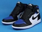 The Air Jordan 1 Retro High OG ‘Royal Toe’ combines classic colors on an iconic silhouette. The all-leather upper features a white base with black overlays and Game Royal accents on the collar, toe box, and rubber outsole. A black nylon tongue with a Nike Air tag and the white Jordan Wings logo on the lateral collar flap complete the design.