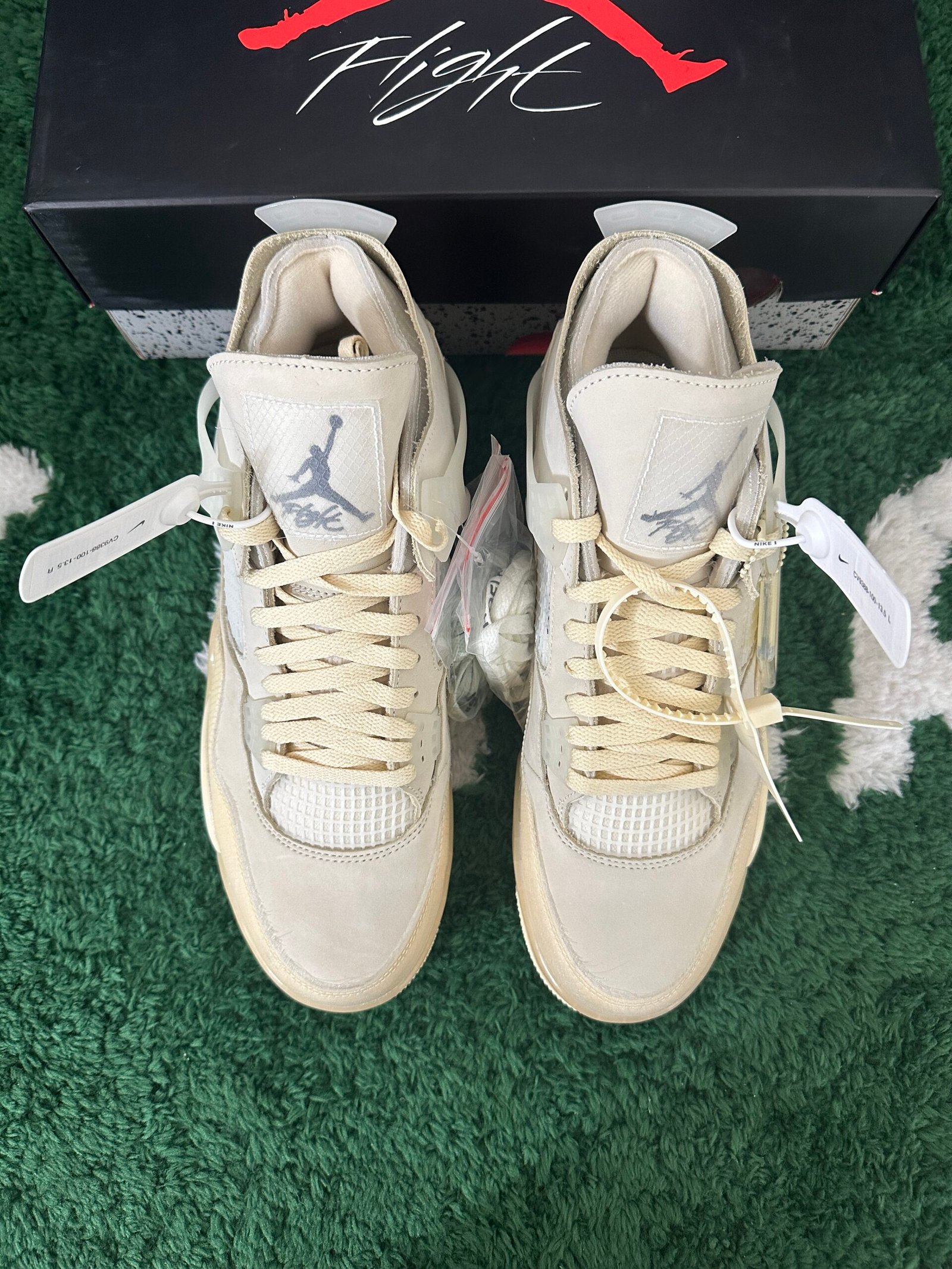 The Air Jordan Brand has once again collaborated with Virgil Abloh to unveil their latest joint creation: the Air Jordan 4 Retro Off-White Sail. This exclusive release features a premium full-grain leather upper, complemented by mesh overlays and distinctive translucent accents on both the toe and heel. The sail-toned design is elevated with subtle pops of light blue, which highlight the Jumpman logo on the tongue and the signature Nike Swoosh on the outsole, resulting in a visually striking contrast that defines this unique sneaker.