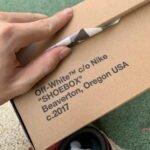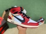 Designed by Virgil Abloh, the Off White x Air Jordan 1 Chicago Red showcases the iconic Chicago color scheme. Notable details include a Swoosh attached to the shoe with visible blue stitching, ‘Air’ branding on the midsole, and an Off-White zip tie adorning the collar. The deconstructed box features an inside-out design with a black base and gold Jumpman logo on the inside, while the exterior displays plain cardboard with ‘Jumpman’ printed on it. Off White x Air Jordan 1 Chicago Red is Virgil Abloh’s Off-White collection also featured reimagined versions of popular silhouettes such as the Air VaporMax, Air Presto, Air Max 90, Blazer, Air Max 97, Hyperdunk 2017, Air Force 1, Zoom Fly, and Chuck Taylor.