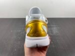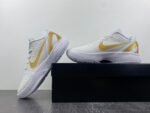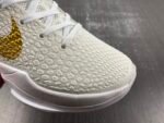 The sneaker features a sleek white upper accented by metallic gold Swooshes and heel details, exuding a premium, luxurious aesthetic. Iconic touches include Kobe Bryant’s inspiring “Be Legendary” mantra and a prominent “BHM” emblem, symbolizing empowerment and the celebration of achievements within the Black community. This thoughtful design captures the essence of Kobe’s impact both on and off the court, embodying his legacy of excellence and inspiration.